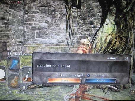 Vielleicht nicht viel, aber es macht Sinn. Ich hatte irgendwie in Erinnerung, dass des einen soapstone dafür gab - beim Kontextmenü "x" zum Bewerten auf Scholar of the First Sin passiert bei mir aber nüscht. Edit: das mit dem "Orange Guidance Soapstome" war bei Dark Souls, dazu gibt es gar ein Tutorial: [http://www.wikihow.com/Write-Messages-in-Dark-Souls] Und hier gibt es auch eins für Dark Souls 2, entspricht dem, was Du schreibst: [https://www.youtube.com/watch?v=LcN-yP4IOow] in diesem Sinne - [https://pbs.twimg.com/media/B6URhobCQAA8Up2.jpg] |