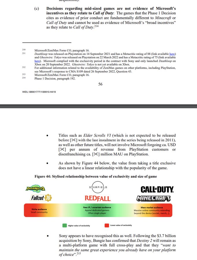 >Bis jetzt hies es doch dass ES6 exklusiv wäre. Nun hat MS ja weitere Argumente für den Deal abgeliefert und da wundert mich diese eine Passage (Erster Absatz, zweite Seite) die Stephen Totilo gestern bei Twitter gepostet hat. Da steht dass man sich den jährlichen Umsatz der Playstation User von ES6 nicht entgehen lassen wolle. Kommt das Spiel also doch für die Playstation? > >[https://pbs.twimg.com/media/FiQ1N9MXEAMhgLM?format=jpg&name=900x900] Klar sagen die das jetzt. Ist imo aber dann nicht glaubwürdig, wenn die ein ähnlich teures Projekt wie Starfield exklusiv machen, was als neue IP sicherlich nicht den Umsatz eines TES Teil macht. Ich glaube weiterhin dass Starfield und TES auf Playstation kommen, aber erst nach 1-3 Jahren. Kann MS natürlich nicht sagen, da dann einige möglicherweise lieber warten statt XCloud, Xbox oder PC zum spielen nutzen. Außerdem lässt sich das sich gut weiter als Druckmittel nutzen um Game Pass auf Playstation zu kriegen. Spencer deutete ja an auf Konsole haben sie wohl bald das Maximum an Abo-Willigen erreicht. Da schielen sie durchaus neidisch zur Konkurrenz was die aktuell mit dem neuem PS+ an Umsatzzugewinn machen. Das Problem bleibt die Glaubwürdigkeit. Wäre Starfield auch auf PS5 oder wäre als zeitexklusiver Xbox Titel angekündigt, sehe das anders aus. ---------------------- Gesendet mit M! v.2.7.0 |