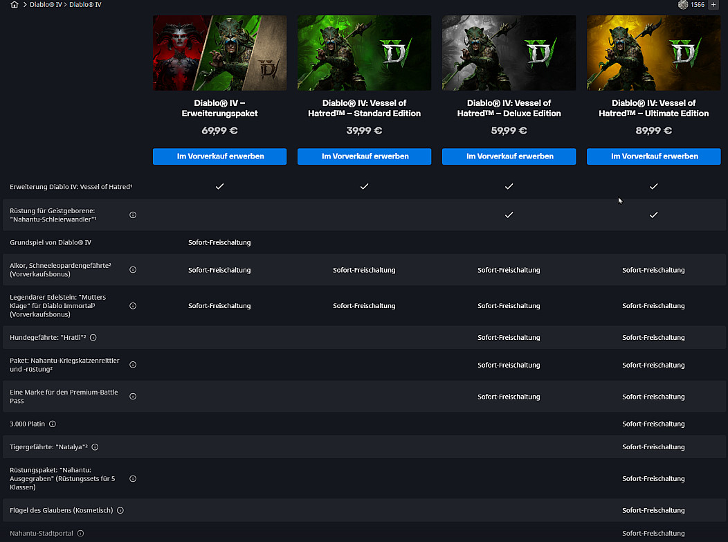 >[https://img.pr0gramm.com/2024/06/09/f156c021c1678e16.jpg] > >Hier ne Übersicht. Bei mir wirds die Standard Edition ;) was heißt denn "Marke" für den Season Pass? ist der ganze Season Pass dann mit dabei? Dafür müsste man ja alleine 1000 ingame Währung ausgeben, ist ungefähr ein 10er. Dann die 3000 ingame Währung, das sind ja rundgerechnet auch ca. 30 Euro. So gesehen sind die 89 Euro für das Deluxe Paket ja ganz ok :) |