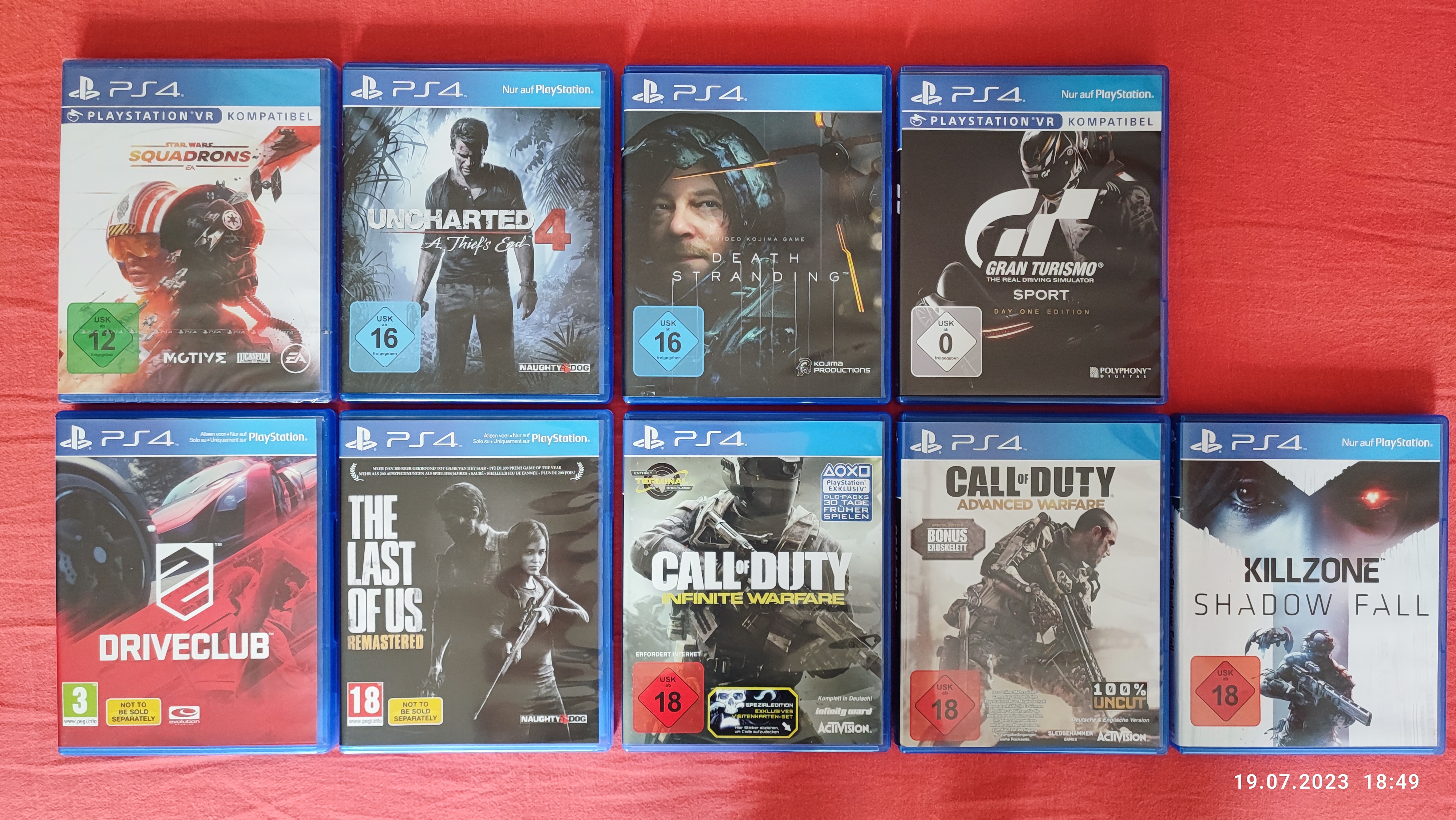 Noch verfügbar: [https://s20.directupload.net/images/230719/tctwlshw.jpg] [https://s20.directupload.net/images/230719/irvtevgj.jpg] [PS4] Star Wars: Squadrons -NEUWARE- 9€ [PS4] Death Stranding 5€ [PS4] Gran Turismo Sport - Day One Edition 4€ [PS4] Uncharted 4: A Thief's End 4€ [PS4] The Last of Us Remastered (PEGI aus Konsolen-Bundle) 4€ [PS4] Driveclub (PEGI aus Konsolen-Bundle) 3€ [PS4] Call of Duty: Infinite Warfare 3€ [PS4] Call of Duty: Advanced Warfare 3€ [PS4] Killzone: Shadow Fall 3€ Porto im Inland: 1,60€ für 1 Spiel (unversicherter LuPo) 1,95€ für 2-5 Spiele (unversicherter LuPo) 2,25€ für 6 Spiele (unversicherter LuPo) 4,40€ ab 7 Spielen (versichertes Hermes-Paket) Bezahlung gerne mit Paypal Freunde & Familie. Meldet euch einfach per PN oder hier im Thread. Ab 18 Jahren! __ Idol |