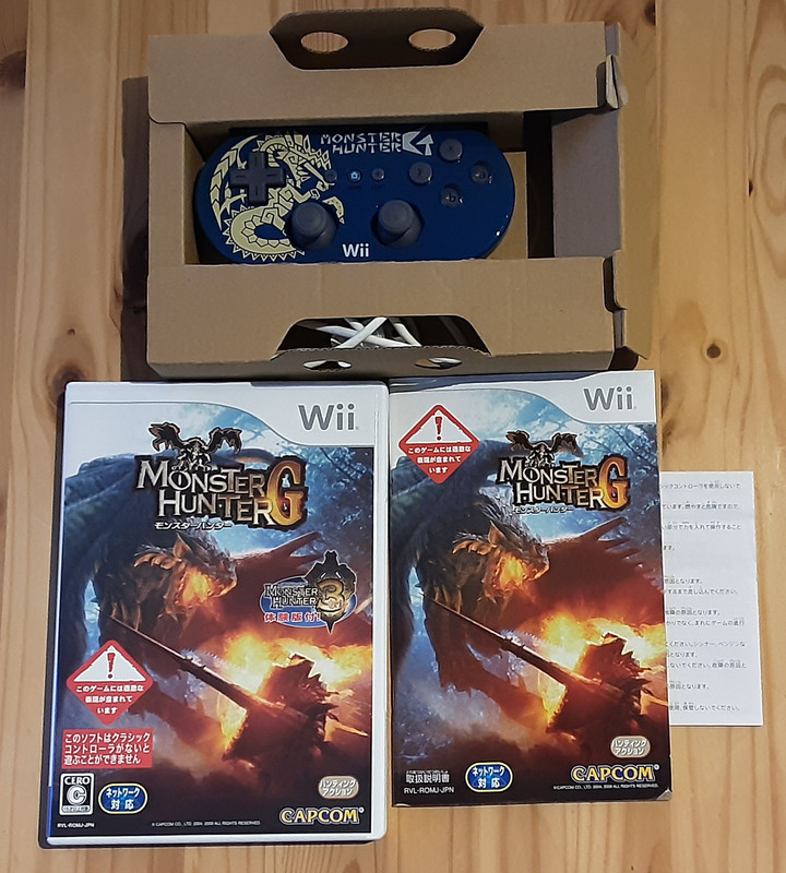 Die japanische Collectors Edition zu dem Spiel Monster Hunter G für Wii. Sie enthält das Spiel und einen Classic-Controller für Wii im dazugehörigen Design. Zustand ist neuwertig. [https://i.postimg.cc/63s1YMG9/Monster-Hunter-G-CE-01.jpg] [https://i.postimg.cc/2SKtBkkL/Monster-Hunter-G-CE-02.jpg] Preis: 50€ |