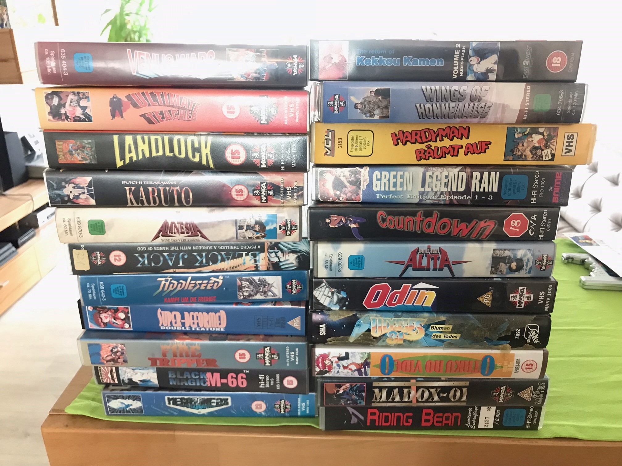 Ich hab noch: [https://www.demolitionsquad.de/extras/maniac/anime-vhs.jpg] Odin & Otaku no Video sind kopien. Ich hab aber noch Originalkassetten im Büro (glaub ich), die kämen dazu. Räume im Zuge meiner Scheidung aus und versuche alles zu versilbern, nehme also jeden Obulus mit. ;) |