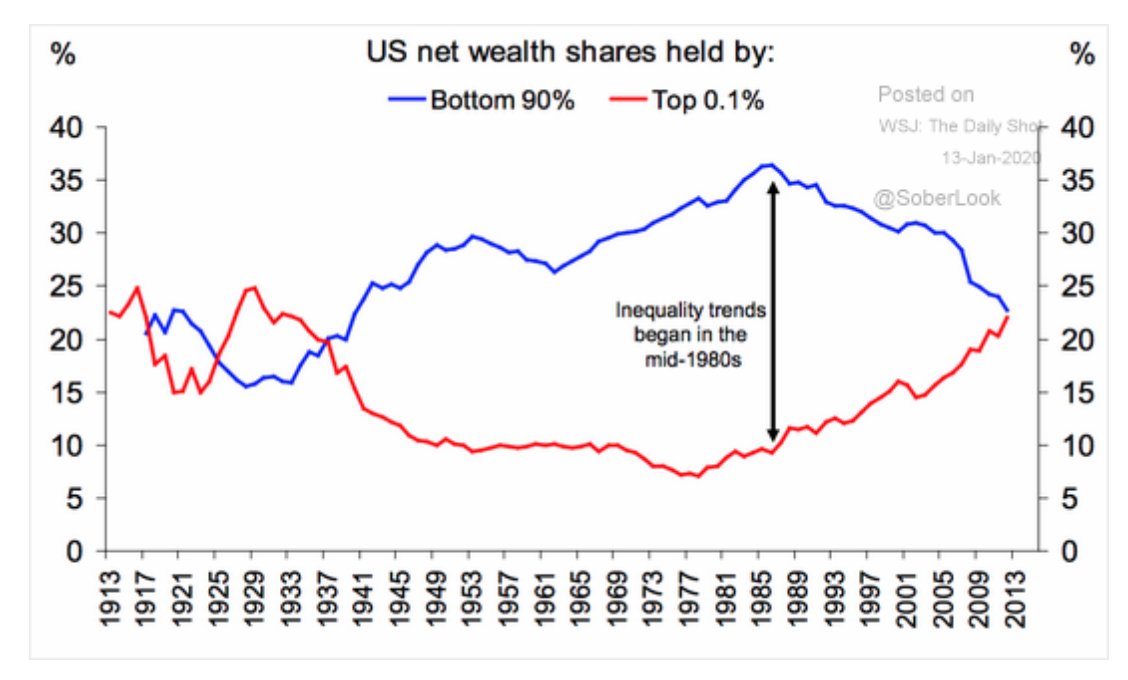 >denn Kapitalismus bedingt das. >Geld erschafft Geld und wer keins hat, bekommt auch nicht so schnell welche(zumindest nicht legal). >Um den ganzen einen Halt zu gebieten müsste der Staat die Reichen viel stärker besteuern und die Armen viel mehr entlasten. Die Umverteilung ist ungerecht ohne Frage. Und sie funktioniert ganz super, was Reiche nicht wahr haben wollen weil sie natürlich weiter exponentielles Wachstum ihres Reichtums anstreben. Roosevelt und FDR haben es gemacht. Am Höhepunkt 1935 besteuerte man Einkommen über 0,5 Millionen pro Monat mit 75%. In den 80ern wurde das ganze System unter Reagan verändert der auf Trickle Down setzte - ein System bei dem man eine angebotsorientierte Marktwirtschaft postuliert und somit die Reichen möglichst keine Steuern zahlen müssen damit sie mehr Kapital haben um Jobs und Waren herzustellen. Was sie halt nicht taten. Der größte Teil des Kapitals ging in ihre Taschen - bis heute. [https://pbs.twimg.com/media/EOcn2dWWkAMkSXZ.jpg] Ein nachfrageorientierte Marktwirtschaft ist in meinen Augen viel sinnvoller. Wenn die Masse den Löwenanteil des Geldes erhält (hohe Löhne) dann geben sie es auch schnell wieder aus (Konsum und Investitionen). Die Nachfrage steigt und der Firmenchef hat volle Auftragsbücher und kriegt das Geld auch auf diese Weise. Je mehr Geld in den Taschen der Bürger um so mehr Nachfrage. Wenn ein einfacher Arbeiter sich ein Haus finanzieren kann und ein Auto kaufen dann schafft er so Arbeit für Häuslebauer und Automobilfirmen. Aber das wollen die Reichen nicht weil dann die ganze Kohle wieder umverteilt wird und nicht auf Konten in Panama landet. |