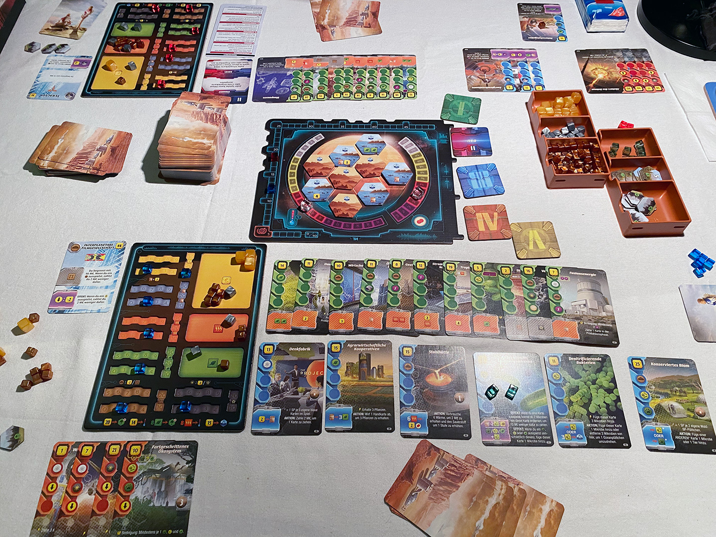 Ich hab zu Weihnachten u.a. Terraforming Mars - Ares Expedition geschenkt bekommen, welches wir dann auch gleich gespielt haben. Eindruck nach mehreren Partien: Pro: Es ist Terraforming Mars. Con: Es ist Terraforming Mars. Nicht falsch verstehen. Wir lieben TM, aber Ares Expedition lässt uns etwas ratlos zurück. Es ist ein tolles Spiel und hier wirklich Jammern auf sehr, sehr hohem Niveau. Angekündigt wurde es damals als "Terraforming Mars Card Game. A new, stand-alone game inspired by Terraforming Mars featuring faster gameplay and over 200 beautifully illustrated cards!" Die Karten sind tatsächlich schöner als beim Original TM, aber "Card Game"? Irgendwie ist es genau so viel oder wenig Card Game wie das originale TM. Man hat halt seinen Konzern, spielt Projektkarten aus und sammelt Ressourcen etc. Es gibt ein paar Dinge die anders gelöst wurden, oder die sogar, wie zB. Städte, Meilensteine, Auszeichnungen, ganz weggefallen sind (Wobei Auszeichnungen und Meilensteine mit einer der Erweiterungen wiederkommen werden). Der Auf- und Abbau geht schneller und man benötigt weniger Platz auf dem Spieltisch Das sind vermutlich auch die beiden größtenVorteile von Ares Expedition. Davon ab wirkt es auf uns bisher wie ein Terraforming Mars 2.0. Halt ein etwas gestreamlined, überarbeitetes TM. "Faster Gameplay": Hmm... wenn wir das Original TM zu zweit spielen spielen wir 2,5-4 Stunden. Bei Ares Expedition spielen wir 2-3 Stunden. (Auf der Packung seht 60min). Vieleicht ist das Problem hier aber auch die 2 Spieler. Es könnte mit mehreren Spielern schneller sein, denn: Als Neuerung hat man nicht jede Runde alle Phasen zur Verfügung. Jeder Spieler wählt im Geheimen eine der 5 Phasen und dann haben alle Spieler nur diese ausgewählten Phasen in eine Runde zur Verfügung. Zu zweit sind es halt max. 2 Phasen je Runde. Maximal 2 Phasen? Ja. Wählen beide Spieler die gleiche Phase, dann hat man halt nur diese eine Phase in der laufenden Runde zur Verfügung. Und das nicht einmal doppelt. Man bekommt also nicht jede Runde Ressourcen, neue Projektkarten, kann nicht jede Runde Karten spielen etc. Kann mir daher schon vorstellen dass es mit mehr Spielern ein schnelleres Spiel wird da dann pro Runde mehr Phasen zur Verfügung stehen können. "Player Interaction" gibt es genau so viel oder wenig wie bei TM. Durch die Auswahl der Phasen ein wenig mehr, aber da die Phasen selbst bei allen Spielern gleichzeitig ablaufen, bekommt man im Grunde weniger mit was der andere gerade macht und beeinflusst sich so auch gegenseitig weniger. Generell ist auch Ares Expedition ein schönes und spassiges Spiel denn es ist halt Terraforming Mars. Aber genau das ist für uns bisher auch das "Problem" an Ares Expedition: Es ist halt Terraforming Mars. Wenn man eines der beiden hat, braucht man das andere nicht unbedingt. Vielleicht sind wir aber im Denken auch noch zu sehr beim originalen Terraforming Mars und denken hier zu umständlich. Vieleicht macht es ja noch klick und hat plötzlich doch eine Daseinsberechtigung neben dem originalen TM. :) [http://www.blindsicht.de/stuff/terraforming-ares02.jpg] |