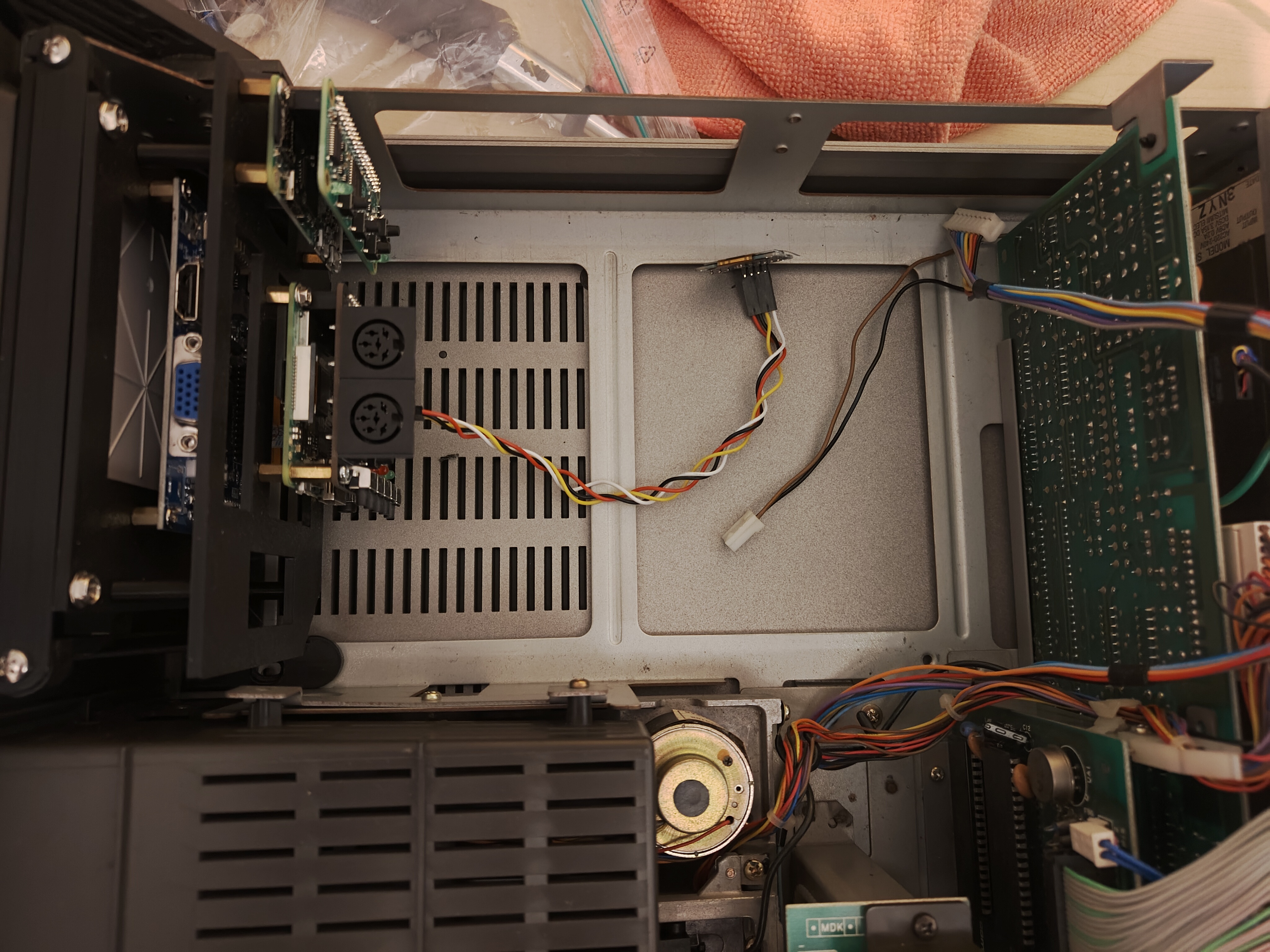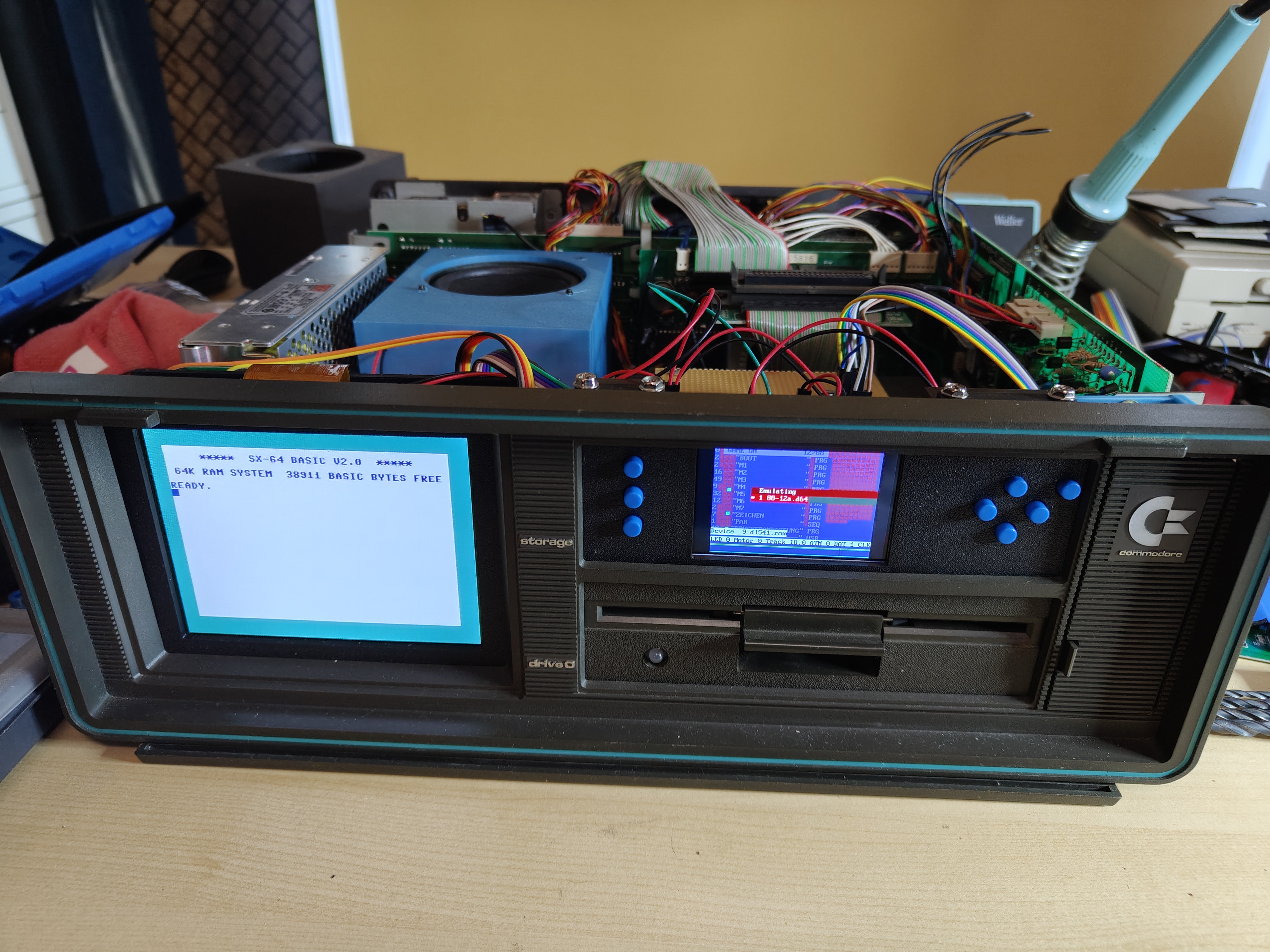 Schon lange wollte ich mal einen SX64 komplett modernisieren. Netzteil, Dual Sid, Monitor, Pi1541... Aber ich habe sehr lange gewartet, bis ein erschwinglicher defekter SX64 auf eBay aufgetaucht ist. Richtig billig war der auch nicht, zu meiner Überraschung funktionierte er auch ganz normal. Davon abgehalten, ein Retroteil zu verschandeln hat es mich trotzdem nicht. Hinten waren schon Löcher reingebohrt, das sollte als Ausrede vollkommen reichen! Einer beiliegenden Diskette konnte ich entnehmen, dass das Gerät einem Waldemar S. aus Hagen gehört haben muss. Sowas zu finden ist immer ein Highlight, auch wenn die Information nutzlos ist. ^^ Zum Einsatz kamen: - VICIIdizer: [https://www.c0pperdragon.com/product/17081252/viciidizer] - RGB2HDMI: [https://www.c0pperdragon.com/p…2/rgbtohdmi-mono-lumacode] - 5 Zoll Display: [https://de.aliexpress.com/item/1005008129581910.html] - Pi1541Hat: [https://sordan.ie/product/663/…r-commodore-64-128-vic20/] - 2,8 Zoll Display für den Pi1541: [https://de.aliexpress.com/item/1005009662503126.html] - Monacor SP-8/4SQS (geschirmt): [https://www.ebay.de/itm/152024736333] - Meanwell Schaltnetzteil: [http://www.reichelt.de/schaltn…5_v_12_v_8_a-p386218.html] - 12V Trafo für die Wechselspannung: [https://www.reichelt.de/de/de/…_v_1777_ma_rm_30_mm-27374] - SidFX, denn Leben mit einem SID ist nur ein halbes Leben: [https://www.sidfx.dk/] - Kleinteile wie Knöpfe, Schalter und Kabel. - Jede Menge Krempel aus dem 3D Drucker, größtenteils Eigenkreationen, mit Ausnahme der Bildschirmhalterung, da hab ich eine vorhandene modifiziert und an die 5 Zoll Größe angepasst. Die 5,6 Zoll Bildschirme, die man in manchen Umbauten sieht, scheint es nicht mehr zu geben. Ich bin zufrieden mit dem Ergebnis, 2 Monate hat es gedauert, die Meiste Zeit ging allerdings fürs 3D-Drucken und Aliexpress bestellen drauf. Fehldrucke hatte ich einen ganzen Karton voll. :D Leider (?) sieht man dem Gerät äußerlich deutlich an, dass es 40 Jahre hinter sich hat. [https://www.gley.net/pics/SX64/tinkercad.jpg] [https://www.gley.net/pics/SX64/01.jpg] [https://www.gley.net/pics/SX64/02.jpg] [https://www.gley.net/pics/SX64/03.jpg] [https://www.gley.net/pics/SX64/04.jpg] [https://www.gley.net/pics/SX64/05.jpg] [https://www.gley.net/pics/SX64/06.jpg] [https://www.gley.net/pics/SX64/07.jpg] [https://www.gley.net/pics/SX64/08.jpg] [https://www.gley.net/pics/SX64/09.jpg] [https://www.gley.net/pics/SX64/10.jpg] [https://www.gley.net/pics/SX64/11.jpg] [https://www.gley.net/pics/SX64/12.jpg] [https://www.gley.net/pics/SX64/13.jpg] [https://www.gley.net/pics/SX64/14.jpg] [https://www.gley.net/pics/SX64/15.jpg] [https://www.gley.net/pics/SX64/16.jpg] [https://www.gley.net/pics/SX64/17.jpg] [https://www.gley.net/pics/SX64/18.jpg] [https://www.gley.net/pics/SX64/19.jpg] [https://www.gley.net/pics/SX64/20.jpg] [https://www.gley.net/pics/SX64/21.jpg] [https://www.gley.net/pics/SX64/22.jpg] |