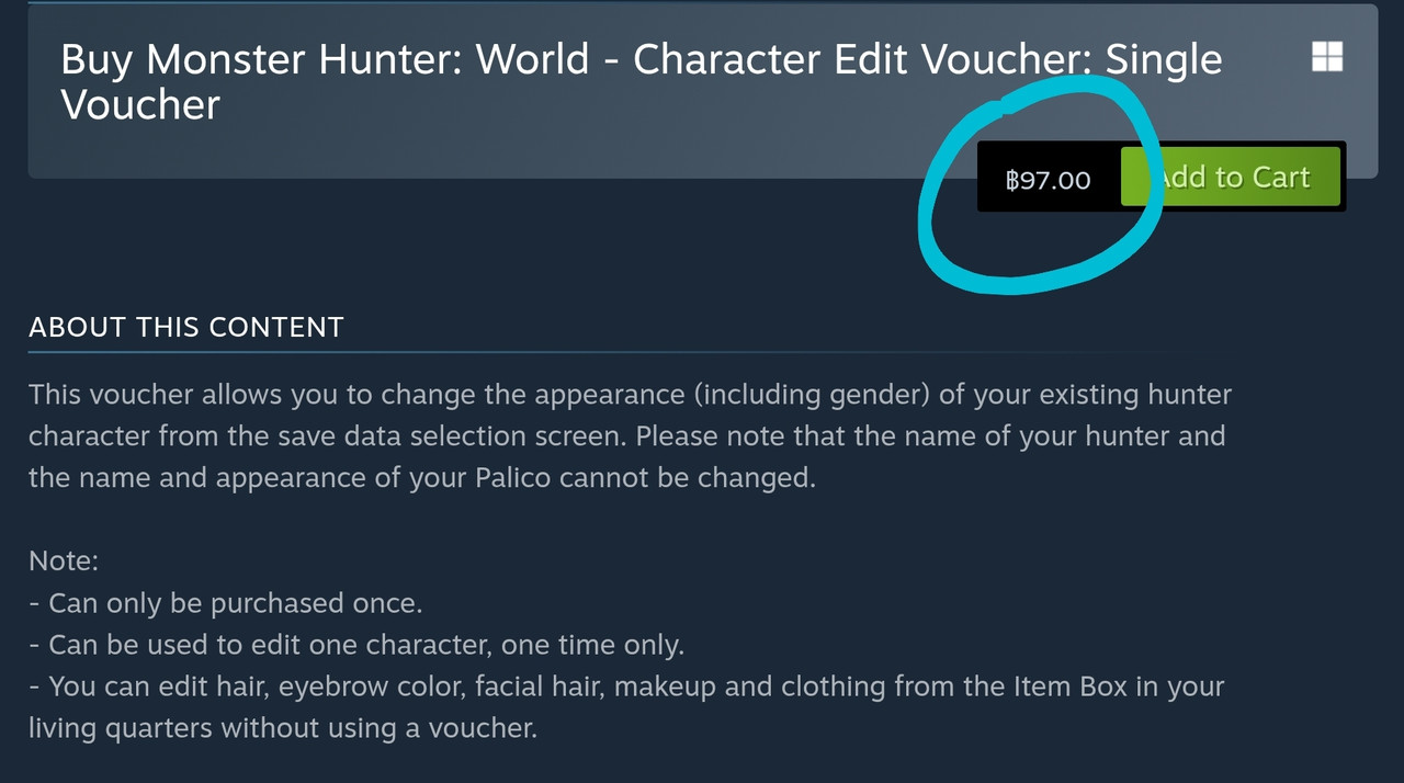 >Das ist ja dreist. Ist mir so noch nirgends untergekommen. >What's next? Der Friseurbesuch in GTA6 kostet? >---------------------- >Gesendet mit M! v.2.7.0 Weiß nicht, was es bei Euch kostet, hier kostet der Monster Hunter World Voucher 97 Baht: [https://i.postimg.cc/NMXCCNbq/Screenshot-20250303-082952-Steam.jpg] |