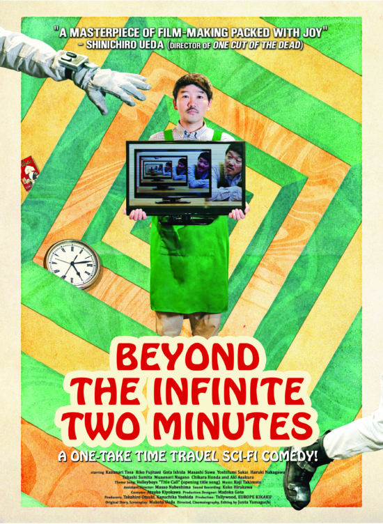 Der Café-Inhaber Kato hat in seiner Bude einen iMac, der die Zukunft von vor 2 Minuten zeigt. Und der entsprechende TV-Monitor, der die Vergangenheit abbildet, steht zufälligerweise in seinem Café ein Stockwerk darunter. Mit beiden Geräten kann man miteinander kommunizieren. Zuerst noch ungläubig staunend über diesen Zeitreiseeffekt, kommt mit Beisein einiger hinzugerufener Freunde, die den Effekt für eigene Spielereien und Zwecke ausnutzen, bei Kato bald Zweifel auf, ob es so schlau ist die Zukunft zu kennen, auch wenn’s nur zwei Minuten sind. Okay, ich hatte schon nach wenigen Minuten einen Knoten im Hirn, angesichts des Paradox der Zeitreise von 2 Minuten auf den Bildschirmen. Es wird zwar versucht diesen zu erklären, aber der hektische Ablauf der Szenen hat nicht wirklich geholfen dahinter zu steigen, und ob das auch immer so hinhaut mit der bildlich dargestellten Zeitverschiebung ist auch fraglich. Ich hab dann aufgeben und mich an der irrwitzigen Inszenierung erfreut, die eben mit einer überschaubaren Schauspielcrew und einem Orts-Setting unterhaltsam auftrumpft. Mit knapp 70 Minuten ist der Film auch angenehm wegzuschauen. Ein paar unlogische Gegebenheiten und Inszenierungsschwächen muss man aber hinnehmen, um daran Spass zu haben. 3/5 Der Film kam wohl gut bei den Zuschauern des Festivals an, denn er hat den NipponConnection Vision Zuschauerpreis gewonnen. [https://watch.nipponconnection.com/film/beyond-the-infinite-two-minutes/] Trailer: [https://youtu.be/TASgvit00HI] [https://www.film-rezensionen.de/wp-content/uploads/2014/12/Beyond-the-Infinite-Two-Minutes-550x752.jpg] |