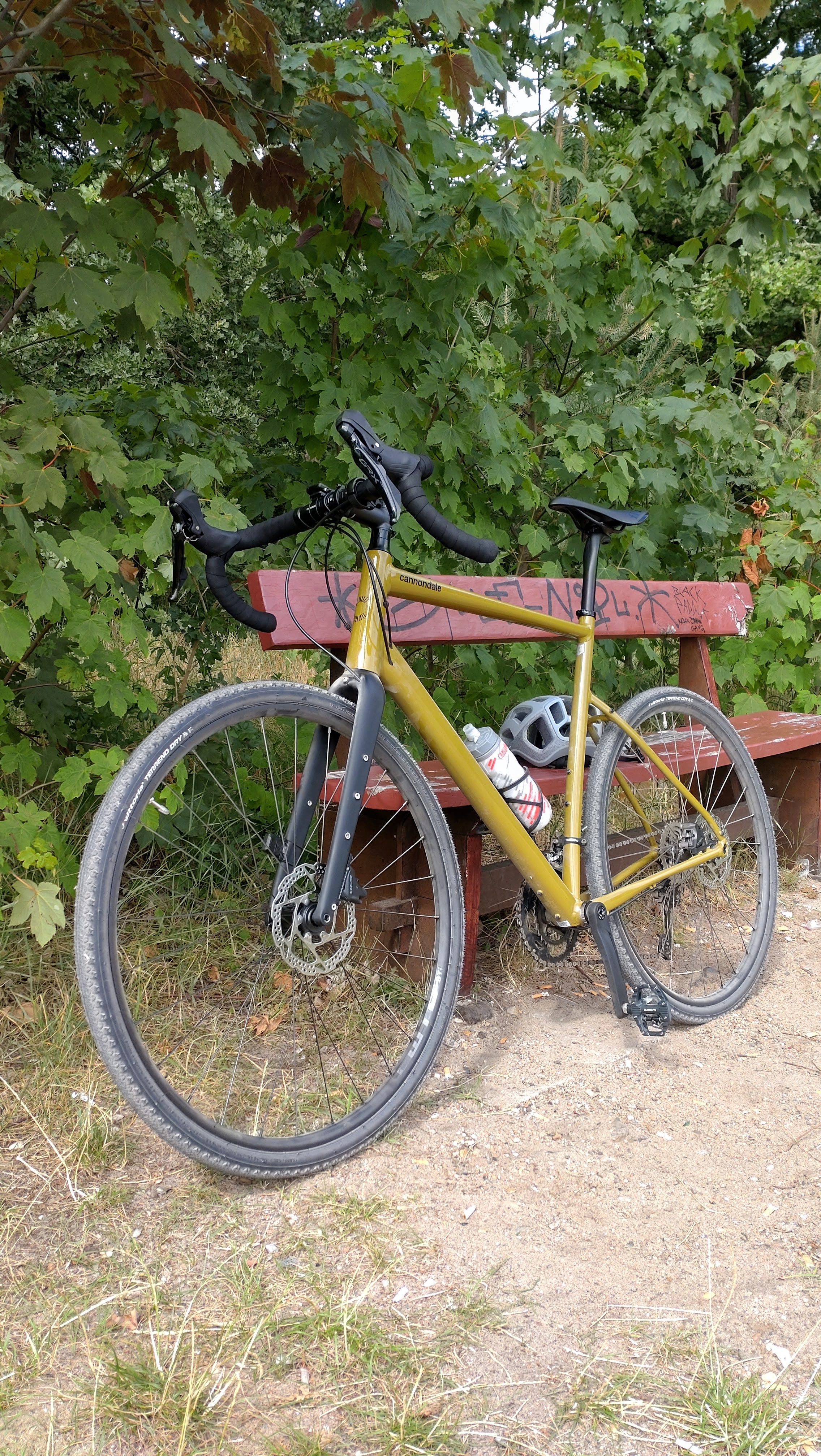 Früher bin ich öfter mal Rennrad gefahren. Ich habe eine 80er-Jahre Gazelle mit alter Shimano 600er Gruppe. das war zwar immer nett, aber Autos nerven, andere Fahrradfahrer nerven und Fußgänger erst... Ich wollte also vom Asphalt in den Wald. Ich bin dann einige Jahre mit einem KTM Itero Cross (Crossbike) durch die Gegend gefahren, was auch ok ist, aber hier hat mich dann wieder das Gewicht gestört. Nun habe ich mir ein Gravelbike gekauft und bin heute das erste Mal unterwegs gewesen. Hat richtig Bock gebracht und ich freue mich so sehr, dass ich diese Entscheidung endlich getroffen habe. Habe alles Original gelassen außer die Sattelstütze. Da bin ich von Alu auf Carbon gewechselt. Hier zwei Bildchen: [https://i.postimg.cc/p2PcBcqS/DSC-0035-1.jpg] [https://i.postimg.cc/tpVcRxsB/DSC-0041.jpg] |