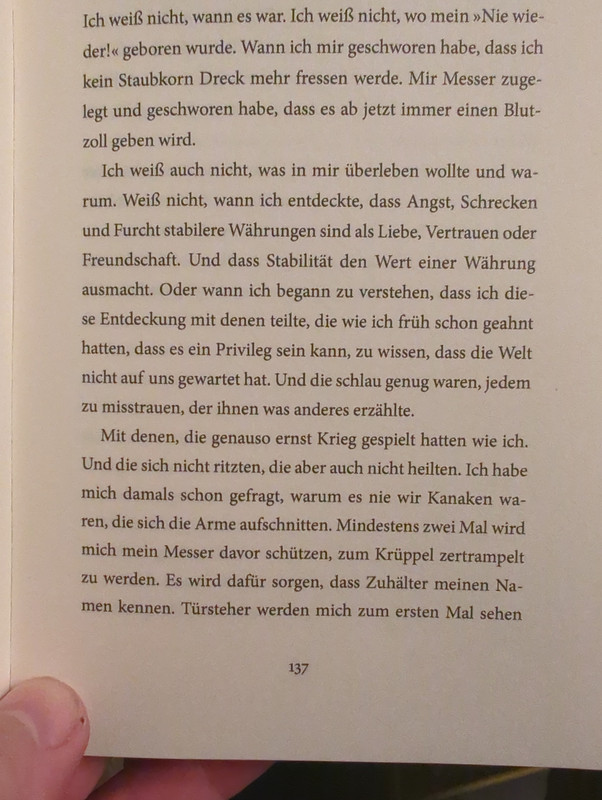 So werte Leser, wieder einmal darf ich euch zehn Bücher vorstellen, natürlich samt handverlesener Leseproben. Herta Müller – Atemschaukel [https://www.amazon.de/Atemschaukel-Roman-Herta-M%C3%BCller/dp/3446233911/?tag=maniacforum-21] Nach „Der Fuchs war damals schon ein Jäger“ mein zweiter Versuch an der Autorin Gefallen zu finden und diesmal hat es weitaus besser funktioniert . Iris Radisch kritisiert Müllers Stil in diesem Buch als „parfümiert“, sprich: zu poetisch, aber hier ist es bei weitem nicht so schwer aufgetragen wie im Fuchs. Um was geht’s? Der junge Protagonist spielt Ende des 2.WK „The Tearoom“ [https://en.wikipedia.org/wiki/The_Tearoom] in rumänischen Park, hat obendrein noch das Pech zur deutschsprachigen Minderheit zu gehören und darf deshalb zur Belohnung in ein sowjetisches Arbeitslager – sämtliche Benefits inklusive. Herta Müller verarbeitet hier die Berichte eines Freundes, der die ganze Scheiße IRL miterleben durfte. IGg. zu Solschenizyn („Archipei Gulag“, „Ein Tag im Leben des Iwan Denissowitsch“ und Imre Kertesz („Roman eines Schicksalosen“) gibt’s also hier die Erlebnisse nur aus zweiter Hand. Dies kann man Müller genauso wie die zu „parfümierte“ Sprache schon zum Vorwurf machen, aber nichtsdestotrotz schafft die das Grauen eines solchen Lagers darzustellen, denn erst kommt das Fressen, dann die Moral, aber sobald eben der „Hungerengel“ über einem schwebt wird es bitter. Sicher noch nicht anfangs, aber irgendwann bieten sich die Damen dann doch an, aber auch dieser Nebenverdienst geht flöten, wenn man dann doch zu sehr Kate Moss ist oder schlicht einfach nicht mehr die Kraft hat, um hinzuhalten. So wird Leichenfledderei wie ihm folgenden Auschnitt zum wortwörtlichen Broterwerb. Als liebender Ehemann hält man seine dahinsiechende Frau natürlich immer in der Nähe, vor allem bei der Essensausgabe bleibt die schön am Tisch und da die Dahinsiechende eh nichts mehr checkt, kann man sich doch als liebender Ehemann hie und da was von ihrem Essen abzwacken… Was so ein Hungerengel aus einem Menschen doch machen kann. Kein Wunder, dass manche den Sprung in die Freiheit wählen und sich vor den Augen aller in noch flüssigen Beton stürzen. Aber Schwamm drüber, der Bau muss weitergehen. Der Protagonist übersteht das Lager, aber wie war das nochmal? Du bekommst zwar die Nutte aus dem Puff... oder kannst heiraten, aber am Ende will man dann doch „The Tearoom“ spielen. Albert Camus - Das Exil und das Reich: Gesammelte Erzählungen [https://www.amazon.de/Das-Exil-Reich-Albert-Camus/dp/3499001683/?tag=maniacforum-21] Was habe ich gekrieschen als ich dachte ich hätte tatsächlich einen Roman von Camus übersehen, dabei war ich mir doch so sicher, dass ich ihn platiniert hatte. Leider stimmt das auch und so durfte ich mit diesen Erzählungen vorlieb nehmen. Leider habe ich nicht ganz so großen Gefallen an ihnen gefunden wie an seinen Romanen oder philosophischen Werken. Zumindest galt dies für die anfänglichen Erzählungen, die letzten drei haben mir gefallen. [https://de.wikipedia.org/wiki/Das_Exil_und_das_Reich] C.G. Jung - Archetypen: Urbilder und Wirkkräfte des Kollektiven Unbewussten [https://www.amazon.de/Archetypen-Urbilder-Wirkkr%C3%A4fte-Kollektiven-Unbewussten/dp/3843610886/?tag=maniacforum-21] Launen und Emotionen der Frau kommen ihr nicht direkt aus dem Unbewußten sondern sind ihrer weiblichen Natur eigen und daher nie naiv, sondern vermischt mit nicht zugestandener Absicht. - Der Eros gehört für den Mann zum Schattenland und verwickelt ihn in weibliches Unbewußtes, „Seelisches“, während der Logos für die Frau eine tödlich langweilige Vernünftelei ist." Auf dieses Jung-Zitat bin ich vor Jahren gestoßen und ich konnte bis heute noch nicht herausfinden aus welchem seiner Werke dies stammt. Ich will euch auch die Geschichte ersparen wieso ich mich jetzt doch mal entschlossen habe von C.G. Jung mal was zu lesen. C.G. Jungs analytische Psychologie sollte nicht mit der Freud'schen Psychoanalyse verwechselt werden. Das eine ist die judäische Volksfront und das andere die Volksfront von Judäa (und ich Depp dachte beide wären von der populären Front). Auch wenn ich das Ganze mit großer Skepsis gelesen haben, haben mich die Betrachtungen und Skizzierungen der diversen Archetypen durchaus fasziniert. Wieso findet man bestimmte Traumbilder in allen (oder zumindest vielen?) Kulturen wieder? Dass neben Vater, Mutter und Kind noch der Archetypus des Tricksters behandelt wurde, hat mich gefreut, da er wie das Dilemma jeder Geschichte Würze verleiht. Ach, fast hätte ich vergessen noch die Ausgabe selber zu kommentieren. Alter, wer hat diese Schriftart durchgewunken. Fand ich ganz seltsam zu lesen, aber noch viel schlimmer waren die die Schriftgröße der Fußnoten: 8 Punkt. (Ohne Scheiß, ich war deswegen ein lebendes Senor Chang Paper Meme) Victor Heringer - Die Liebe vereinzelter Männer [https://www.amazon.de/Die-Liebe-vereinzelter-M%C3%A4nner-einzigartiger/dp/3755000393/?tag=maniacforum-21] [https://www.perlentaucher.de/buch/victor-heringer/die-liebe-vereinzelter-maenner.html] Wieder einmal ein Tipp von Wolle Schmitt und wieder einmal stelle ich einen Roman vor dessen Autor die Flucht in den Freitod „wählte“. Um was geht’s? Brasilien während der Militärjunta: Der verkrüppelte Ich-Erzähler Camillo – Sohn eines alkoholkranken Arztes – kriegt vom Vater eines Tages einen neuen Bruder mitgebracht. Papa hatte es wohl bei seinem Job als Folterarzt etwas übertrieben, da entsteht auch mal 'ne Vollwaise. Ein schlechtes Gewissen kann man doch nicht immer betäuben. Tja, und wie so der Ich-Erzähler das brasilianische Leben in den 70ern beschreibt ( der ganz normale Alltag: Schule, Jungsclique – hier holt man sich dann auch im Kreis gegenseitig einen runter) stellt sich heraus, dass er seinen Adoptivbruder Cosme trotz anfänglicher Antipathie irgendwann doch leiden kann, ja nicht nur das