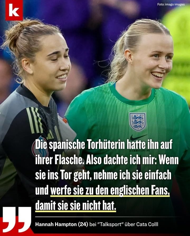 >[https://pbs.twimg.com/media/Gx-DMyFWUAAxy0g.jpg] > >[https://pbs.twimg.com/media/Gx-DNasXIAMFnz9.jpg] > >[https://pbs.twimg.com/media/Gx-T5tuXAAAlh9G.jpg] Ich find's cool! :-) Mir ist Hannah Hampton schon öfter als sehr sympathisch aufgefallen. Wer diese Infos nicht sicherheitshalber auswendig lernt, hat's auch nicht anders verdient. Finde es komplett albern, deshalb jetzt ein Fass aufzumachen. Und mal ehrlich: Bei einem Mann wäre da jetzt sicher nicht von "fiesem Trick", "Schikane" oder "Sabotage" die Rede. Da wäre das einfach nur ein cleverer Gewinnertyp. Bemerkenswert ist jedoch, dass Cata Coll der Geschichte widerspricht: [https://www.goal.com/en/lists/hannah-hampton-called-out-cata-coll-lionesses-hero-threw-bottle-penalty-tactics-euro-2025/bltf388e7977f9ba1db#csf872755a7f0dae69] Wäre natürlich sehr schräg, wenn sich Hampton die ganze Geschichte ausgedacht hätte. Coll hat das aber nicht aber weiter ausgeführt, insofern ist man jetzt auch nicht wirklich schlauer. |